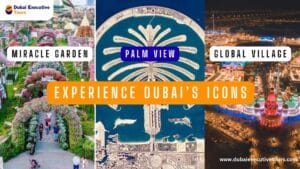 Dubai Executive Tours designed this package for visitors. You’ll experience three different worlds in one day. The Dubai Frame shows the city’s past and future. Miracle Garden surrounds you with millions of flowers. Global Village brings 75 countries to one place. This Best Dubai Combo Tour package brings together Dubai’s top attractions.